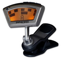 A compact, very accurate, chromatic Clip-on made of stainless steel & carbon fiber. 360° rotating pivot points. Steel players, simply clip it onto the end of your steel guitar headholder. Includes a cushioned, metal carrying case will keep it safe when not in use. Soft, rubber pads in the jaws of the StroboClip will protect the instrument's finish while providing a firm grip for maximum signal conductivity. #SCT $79.00